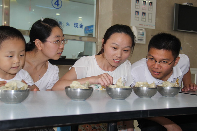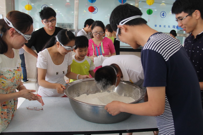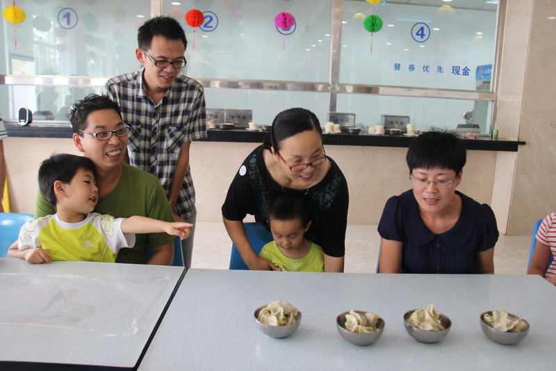 活動地點(diǎn)設(shè)在公司食堂,五色的燈籠把職工食堂裝點(diǎn)得溫馨祥和,彌漫著濃厚的節(jié)日氛圍。節(jié)目豐富多彩:“眾星拱月”——斯文的大學(xué)生無論男女,全然不顧形象,一頭扎進(jìn)面粉堆中尋找“圓月”;“心驚肉跳”——臨時組建家庭精心挑選,分享品嘗混有“驚喜”的餃子;“團(tuán)隊(duì)協(xié)作”——四人兩兩手綁手合作包餃子;DIY——親自縫制精美的香袋……經(jīng)過四輪合作比拼,各個獎項(xiàng)花落各家,都收獲了精美的禮品和滿滿的祝福。