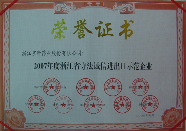 為樹(shù)立守法誠(chéng)信進(jìn)出口企業(yè)典型,推進(jìn)進(jìn)出口企業(yè)誠(chéng)信體系建設(shè),浙江省打私與海防口岸辦、杭州海關(guān)、寧波海關(guān)、浙江檢驗(yàn)檢疫局、寧波檢驗(yàn)檢疫局、省國(guó)稅局、省外匯管理局、省工商局、省外經(jīng)貿(mào)廳聯(lián)合在全省范圍內(nèi)開(kāi)展了2007年度守法誠(chéng)信進(jìn)出口示范企業(yè)推薦活動(dòng)。經(jīng)各市打私辦與有關(guān)職能部門(mén)共同推薦,省級(jí)有關(guān)部門(mén)共同審核,公布了2007年度浙江省守法誠(chéng)信進(jìn)出口示范企業(yè),我公司榜上有名。