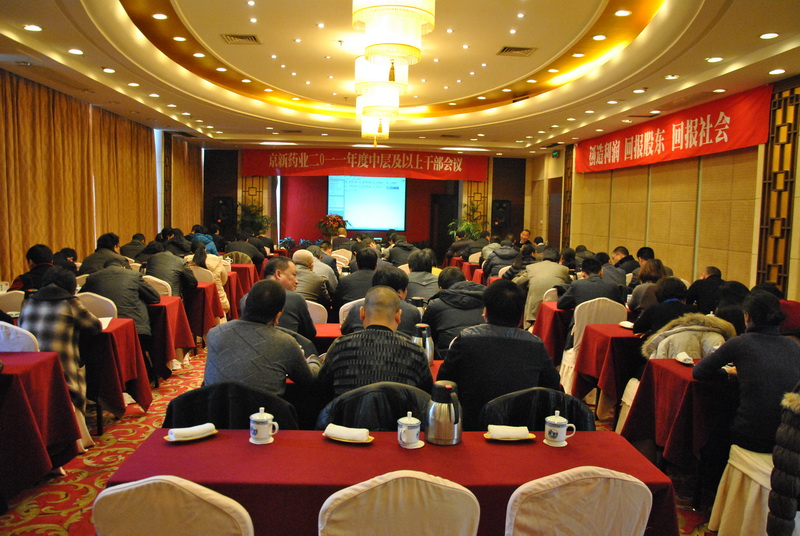 會上,藥品銷售公司、藥品制造公司、內蒙京新、上虞京新、廣豐京新、原料藥銷售公司六個分子公司總經理和研發中心主任向大會作2011年度工作述職和2012年經營思路和工作計劃匯報。隨后,公司總經理呂鋼與各分子公司總經理分別簽訂了年度責任狀。