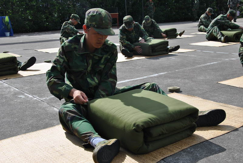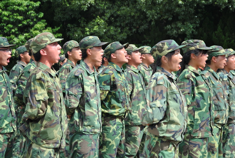 雖然還只是上午8:30,但炙熱的太陽曬在身上已是火辣辣的,只要站在太陽底下就會大汗淋漓了。參加匯報表演的29名大學生,稚嫩的肌膚已經被曬成了紫銅色,綠色的迷彩服早已經被汗水浸濕,但每個人臉上卻洋溢著堅強和自信。響徹云霄的嘹亮軍歌,秩序井然的內務整理,訓練有素的打背包,整齊劃一的隊列訓練,鏗鏘有力的擒擊拳,無一不展現出12天軍訓的累累戰果,這也證明了29名新大學生經受住了從學校到企業的第一次考驗,向企業交上了一份滿意的答卷。