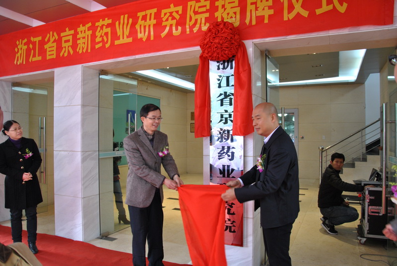 在陣陣喜慶的鞭炮聲和熱烈的掌聲中,公司董事長兼總經理呂鋼和副總經理王光強一同為浙江省京新藥業研究院揭牌。