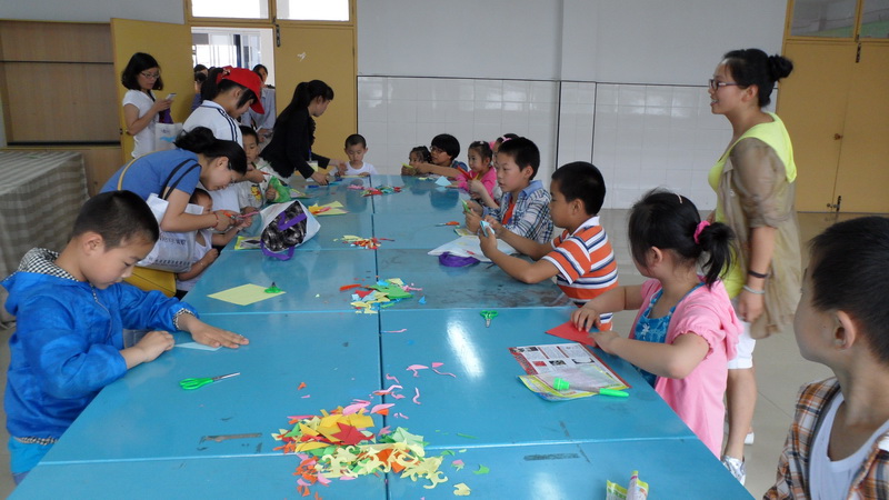雖然天公不作美,下了一整天的大雨,但絲毫沒有阻擋小朋友們參加活動的熱情,因為參加人員較多,許多活動室前排起了長長的隊伍龍。趣味剪紙、七彩風車、元祖體驗、創意軟陶等需要小朋友們自己動手創作的活動項目不僅充分發揮了他們的想象力,而且也讓他們從中體會到了動手的樂趣。在親親大腳板、心有靈犀、袋鼠賽跑等親子游戲中,展現的則是一派配合默契、你追我趕、其樂融融的熱鬧景象。天文科普、禁毒教育體驗、科技探夢等活動讓小朋友們在參加活動的同時又增長了科普和安全知識。